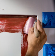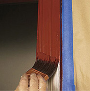 Begin your painting project by pouring thoroughly mixed paint into a bucket and dipping a quality 2"-2 ½" wide nylon/polyester brush into the paint.