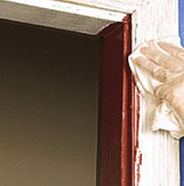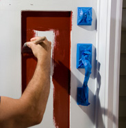 Return to the top of the door trim and begin painting the face of the trim.