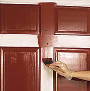For paneled doors and frames, paint into the recessed area of the panel. Begin at a corner of the recess and continue around its perimeter. Work from top to bottom.