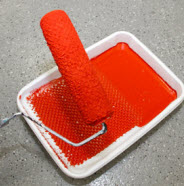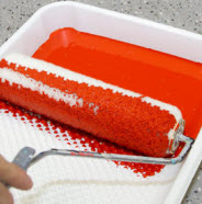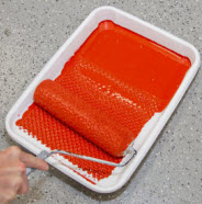 Roll off excess paint onto the shallow end of the paint tray.