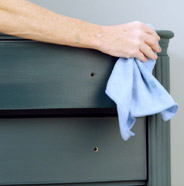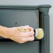 Using a BEHR® Chalk Decorative Wax Brush or rag, apply BEHR® Wax Decorative Finish on the surface of your painted furniture.