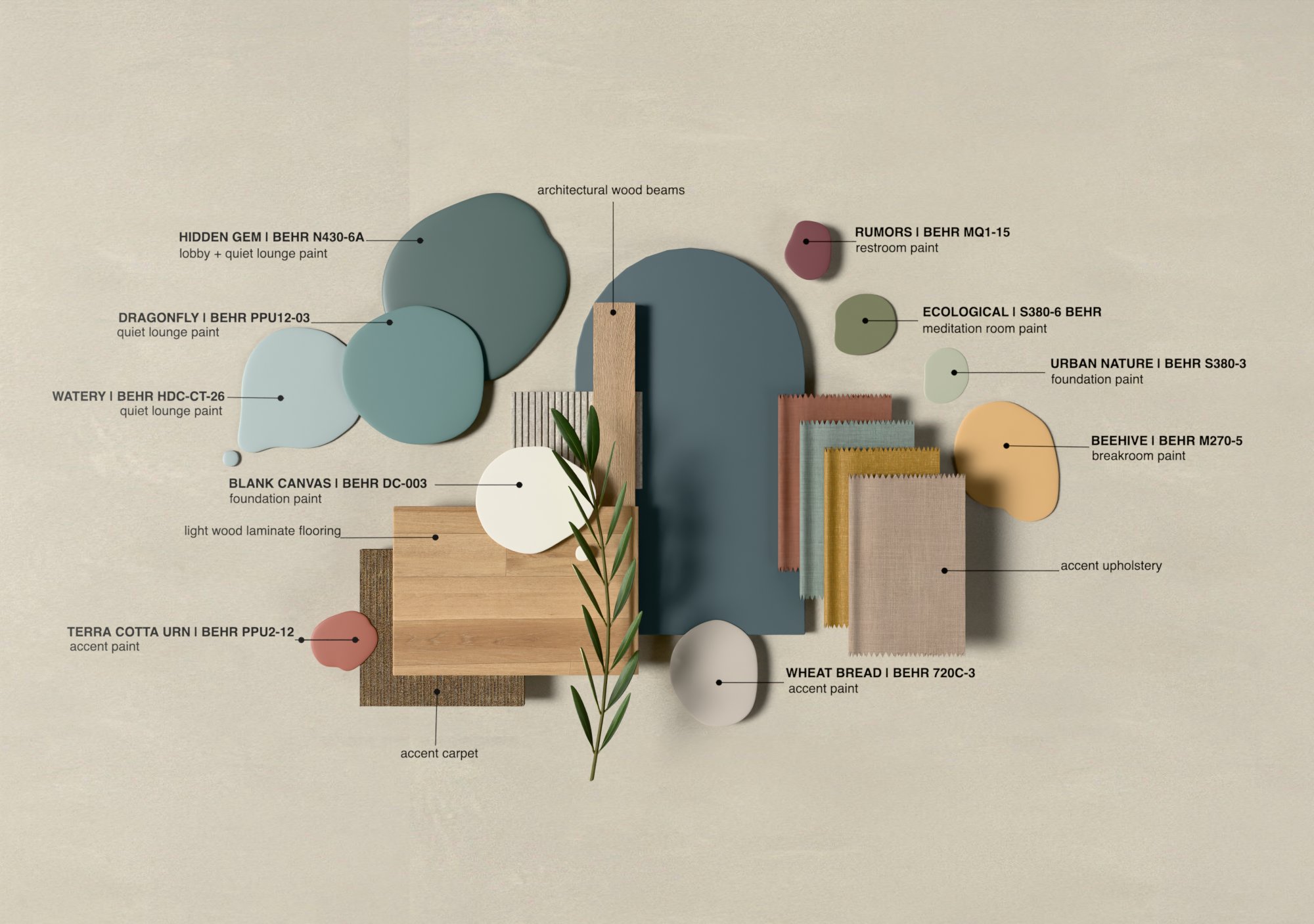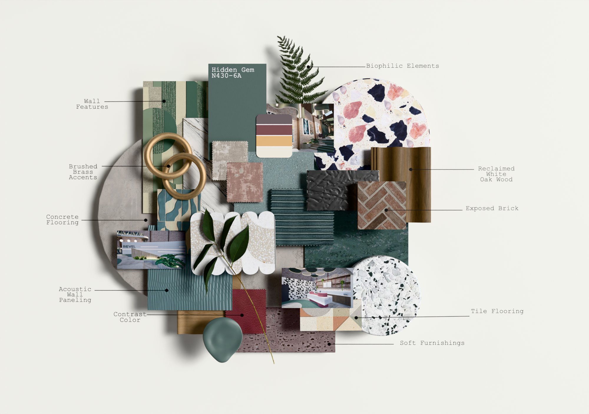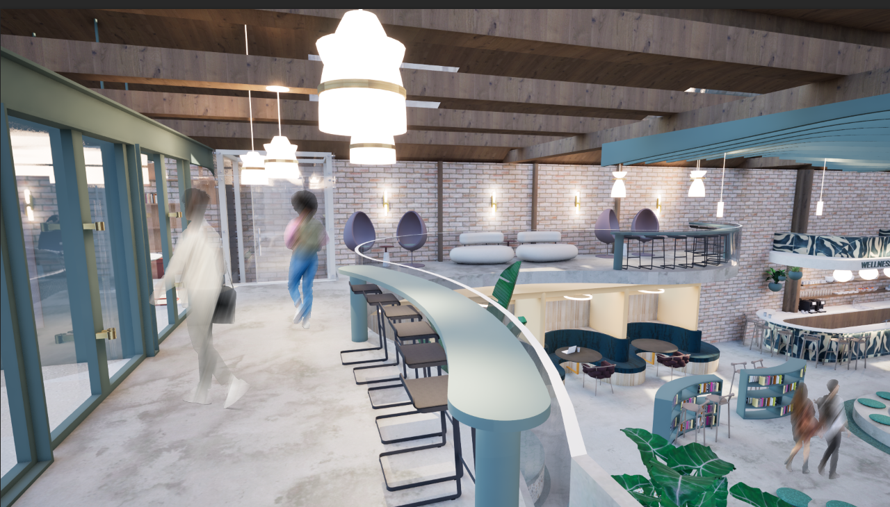 REVEL is a cultural hub where creativity, community, and connection converge to empower the next generation. Rooted in the belief that community grows stronger when shared, REVEL offers flexible, multipurpose spaces that adapt to the rhythms of everyday life. Community exhibition zones, open lounges, adaptable event areas, and a wellness focused café create an environment that supports social connection and creative expression. In the heart of LA's Fashion and Arts District, it invites young innovators to gather, make, and discover new possibilities together. Behr's Hidden Gem N430-6A anchors the concept, symbolizing the discovery of new perspectives within the community. In bright light, it reveals cooler blue undertones; in shadow, it deepens into a contemplative green mirroring the layered identity of LA culture. Rumors MQ1-15 adds contrast, while Curtain Call N570-5, Beehive M270-5, and Blank Canvas DC-003 introduce warm neutrals that soften the warehouse's industrial shell. The design preserves the raw character of the existing structure while elevating it with natural light, biophilic elements, reused materials, and curved pathways that echo the movement of ideas. A fully ADA compliant layout ensures accessibility for all. REVEL becomes a modern, "instagrammable" destination that sparks curiosity and encourages visitors to stay, explore, and connect.